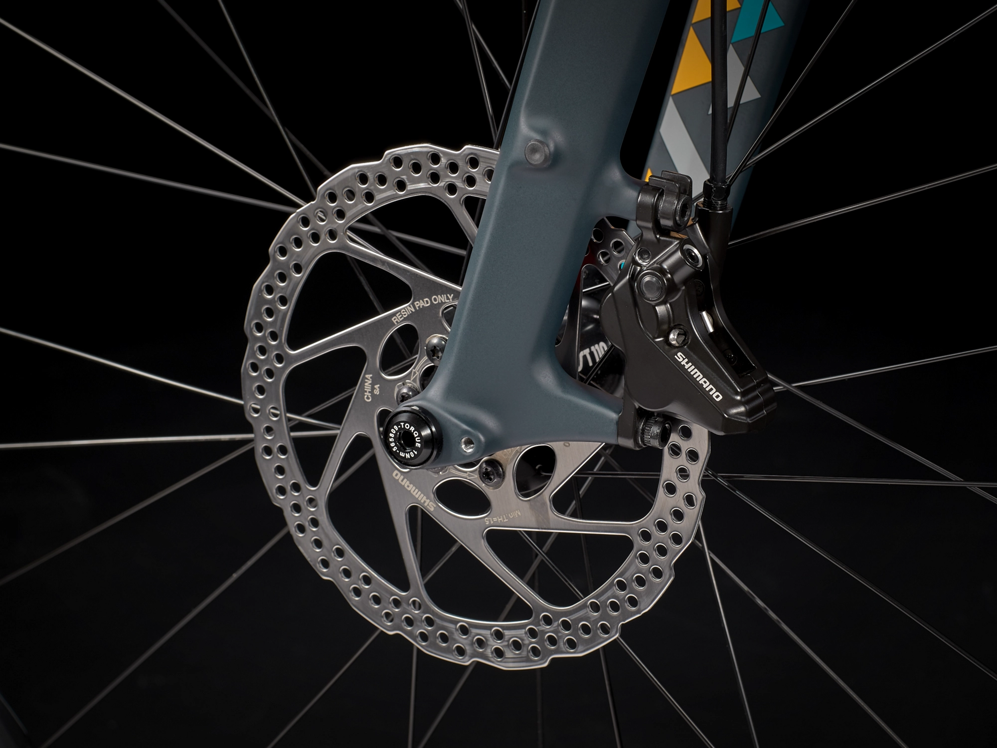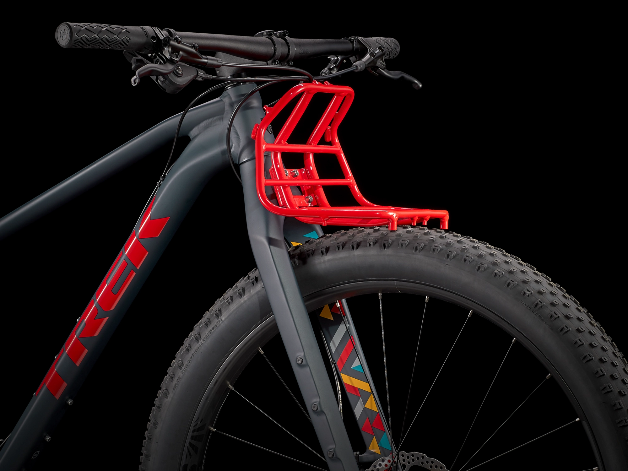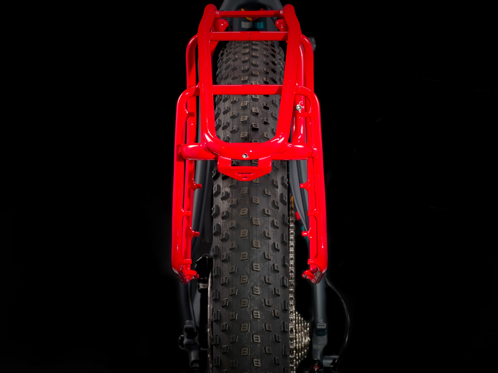 Einen Aluminiumrahmen mit verstellbaren horizontalen Ausfallenden hinten, eine Carbongabel, ein von Trek entwickeltes Gepäckträgersystem samt Aufnahmen für 8-Liter-Drybags deiner Wahl, einen 1×12-Antrieb von Shimano mit breitem Übersetzungsbereich, hydraulische 4-Kolben-Scheibenbremsen von Shimano für überragende Bremskraft, 29-Plus-Reifen und eine Bontrager Line-Variosattelstütze zum einfachen Auf- und Absteigen und für komfortable Abfahrten bei voller Beladung.