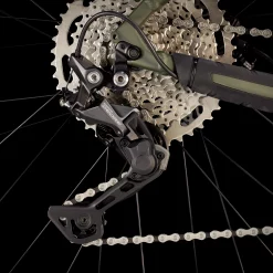 Einen leichten Rahmen samt Gabel aus OCLV Carbon mit Aufnahmen für Gepäckträger und Gabelkäfige. Das bekommst du gewaltige 4,5-Zoll-Reifen, die souverän über Sand und Schnee hinwegrollen. Eine TranzX-Variosattelstütze mit 130 mm Hub sorgt für jede Menge Bewegungsfreiheit und ermöglicht auf steilen Abfahrten eine optimale Haltung. Die robuste SRAM GX Eagle-Gruppe schaltet und bremst auch bei kalten und sogar eisigen Bedingungen zuverlässig. Die interne Zugführung schützt Züge und Leitungen vor den Elementen und sorgt für einen aufgeräumten Rahmen. Außerdem punktet es mit verstellbaren, horizontalen Ausfallenden.