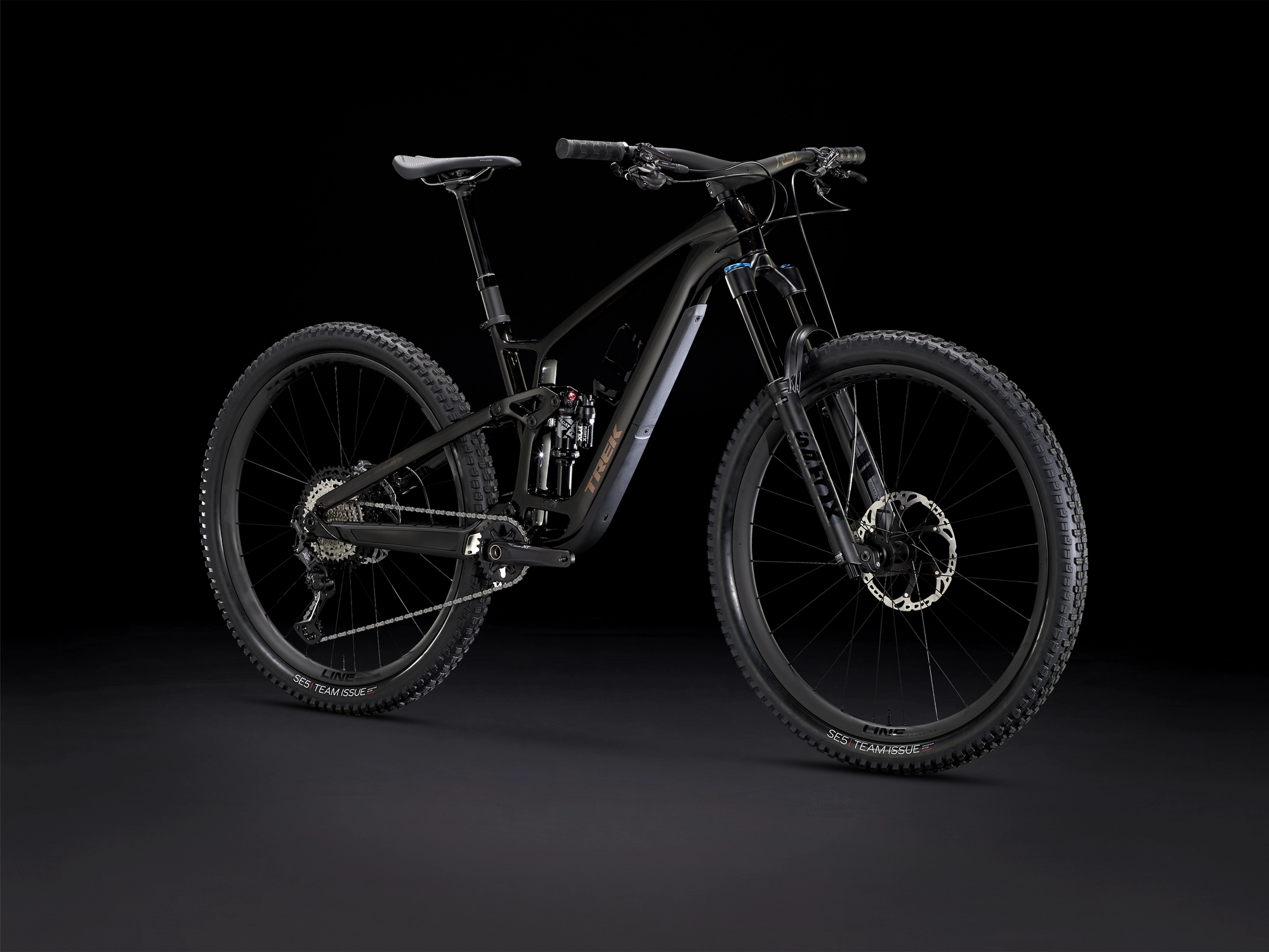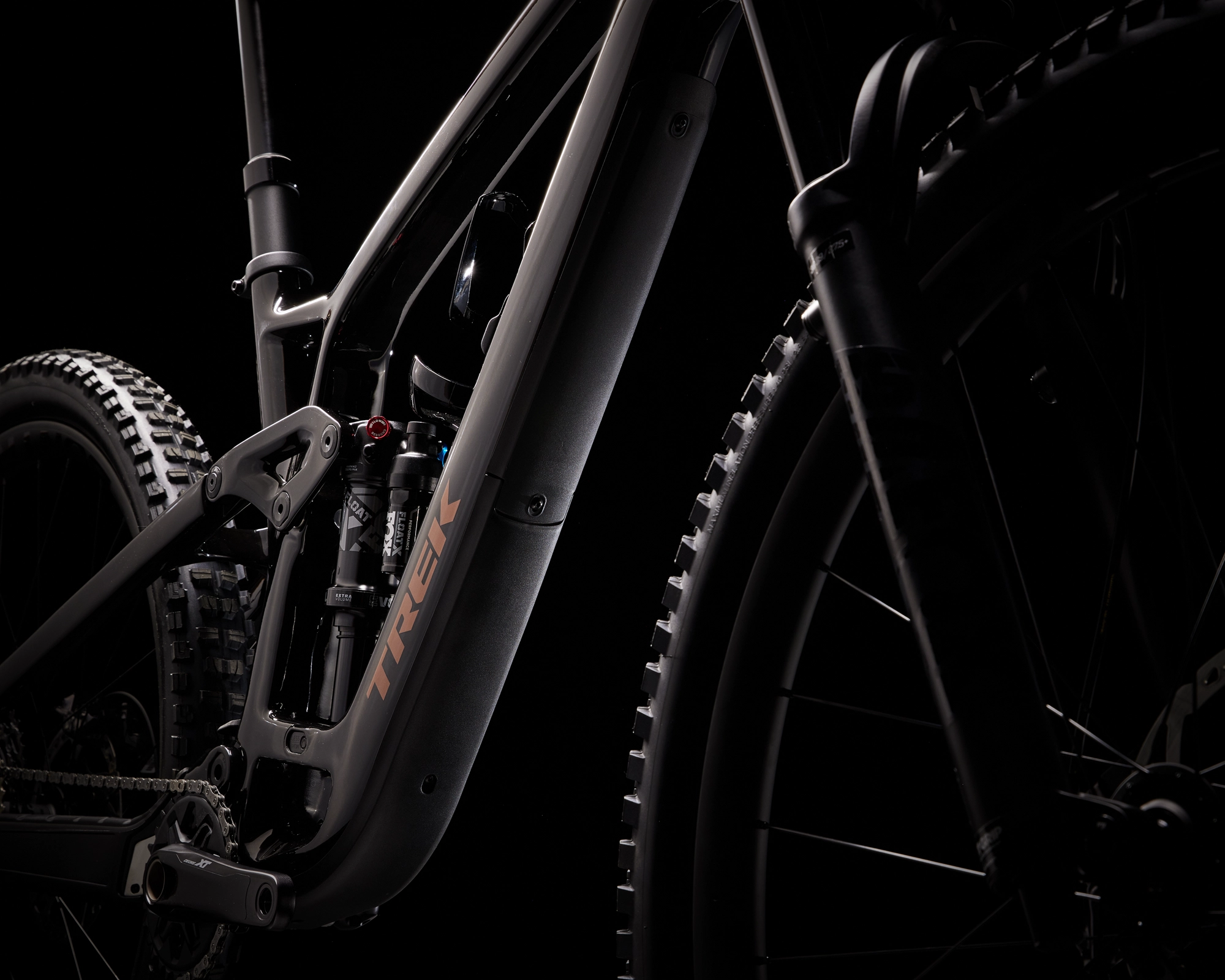 Das Fuel EX 9.8 XT ist ein Trail-Allrounder, der einen leichten, nachgiebigen Carbonrahmen mit hochwertigen, für den harten Geländeeinsatz konzipierten Teilen kombiniert. Das FOX Performance-Fahrwerk mit 150 mm vorderem und 140 mm hinterem Federweg bügelt alles glatt, was sich dir in den Weg stellt, während dich die Carbonlaufräder auch in grobem Geläuf sicher in der Spur halten. Mit dem präzise schaltenden Shimano XT-Antrieb steht dir sowohl auf Anstiegen als auch auf Abfahrten stets der richtige Gang zur Verfügung.… du lange, flowige und technische Abfahrten bevorzugst, vor dem Rückweg auf den Berg aber nicht zurückschreckst. Du willst von den vibrationsdämpfenden Eigenschaften von Carbonrahmen und Carbonlaufrädern profitieren. Außerdem willst du ein hochwertiges Fahrwerk, das grobe Schläge kommentarlos schluckt.Einen leichten und steifen Carbonrahmen mit komplettem FOX Performance-Fahrwerkspaket für die unvermeidlichen Geröllfelder und Wurzelteppiche. Dazu gibt‘s leichte Carbonlaufräder sowie eine Shimano XT-Gruppe, die geschmeidig schaltet und eine optimale Bremsdosierung garantiert. Und zu guter Letzt bekommst du eine verstellbare Geometrie und ein im Unterrohr integriertes Staufach.Das Fuel EX 9.8 ist das fulminante Ergebnis unzähliger Trailrides und jahrelanger technischer Innovation – mit längerem Reach und flacherem Lenkwinkel für steile und brenzlige Abfahrten und mit steilerem Sitzrohrwinkel für eine effiziente Sitzposition auf Anstiegen. Ausgestattet ist es mit sorgfältig ausgewählten Komponenten, wie etwa das hochwertige Fahrwerk, die leichten Carbonlaufräder und der zuverlässige Shimano XT- Du profitierst vom leichten Gewicht und von den vibrationsdämpfenden Eigenschaften eines Vollcarbonrahmens mit einer extrem vielseitigen Geometrie.- Die leichten und steifen Carbonlaufräder bringen dich schnell durch technisches Terrain und halten auch in kniffligen Passagen die Linie.- Dank anpassbarem Steuersatz (Angle Set-Steuersatzschalen sind separat erhältlich) und Mino Link sind sechs unterschiedliche Geometriekonfigurationen möglich.- Dank unseres erweiterten Größenangebots profitieren alle Rider von einer besseren Passform. Außerdem bekommt jede Rahmengröße die am besten passende Laufradgröße: Rahmen in XS rollen auf 27,5″-Laufrädern, bei Rahmen in Größe S kann zwischen 27,5″- od- Neben den präzisen Schaltvorgängen und der optimalen Bremsdosierung der Shimano XT-Gruppe profitierst du außerdem von der hohen Zuverlässigkeit eines wartungsfreundlichen Gewindeinnenlagers.Integriertes StaufachDank integriertem Staufach kannst du den Rucksack zu Hause lassen, ohne auf das Notwendigste für deine Ausfahrt verzichten zu müssen.Active Braking PivotActive Braking Pivot erlaubt unseren Ingenieuren die Feinabstimmung, wie die Federung unabhängig voneinander auf Beschleunigungs- und Bremskräfte reagiert. Das vermittelt dir in kritischen Situationen mehr Vertrauen.Du entscheidest: flacher oder steiler LenkwinkelInstalliere angewinkelte Lagerschalen (optional erhältlich), um den 64,5-Grad-Lenkwinkel um ein Grad anzuheben oder abzusenken, ohne die Innenlagerhöhe zu beeinflussen.Passe das Fahrwerk an deine Anforderungen anPasse die Hebelübersetzung durch einfaches Umlegen des Flipchips an. Fahre dein Bike in der weniger progressiven Einstellung für ein geschmeidigeres Fahrgefühl auf ruppigen Trails mit härteren Schlägen. Lege den Flipchip auf die progressivere Stellung um, wenn du große Rampen fahren willst, ohne Angst vor Durchschlägen haben zu müssen – oder wenn du einen Stahlfederdämpfer fahren willst.Größenspezifische KettenstrebenGrößenspezifische Kettenstreben sorgen für ein ausgewogenes Handling: hohe Agilität für kleinere Fahrer:innen, optimale Vorderradtraktion auf Anstiegen für größere Fahrer:innen.Vorne stattlich, hinten spritzigDu willst von der Agilität von 27,5″-Laufrädern profitieren, willst aber nicht auf die Schnelligkeit eines 29er verzichten? Mit dem Fuel EX kannst du beides haben. Dieses Bike ist bereit für ein Mullet-Setup (29er vorn, 27,5-Zöller hinten) – stell dafür einfach den Mino Link auf die hohe Position, montiere eine 160-mm-Gabel und lass die Party beginnen.Geschlecht: UniRahmen: OCLV Mountain Carbon, integriertes Staufach, verstellbarer Steuersatzwinkel, per Mino Link abstimmbare Geometrie, einstellbare Progression, geführte interne Zugverlegung, Magnesiumumlenkhebel, 34,9 mm Sitzrohrdurchmesser, ISCG 05, 55 mm Kettenlinie, BSA 73, Unterrohrschutz, Shuttle-Guard, ABPRahmengröße: MLRahmenmaterial: CarbonGangschaltung: Shimano XT M8100, langer KäfigAnzahl Gänge: 1Schalthebel: Shimano XT M8100, 12fachGabel: FOX Performance 36, Float EVOL-Luftfeder, GRIP-Dämpfung, konischer Gabelschaft, 44 mm Vorbiegung, Boost110, 15 mm Kabolt-Achse, 150 mm FederwegSchaltwerk hinten: Shimano XT M8100, langer KäfigKette: Shimano XT M8100, 12fachLenker: Bontrager RSL, integrierte Lenker/Vorbau-Einheit, OCLV Carbon, 27,5 mm Rise, 820 mm Breite, Vorbau mit 0 Grad Rise, 45 mm VorbaulängeLenkerband Griffe: Bontrager XR Trail Elite, NylonklemmeSattel: Bontrager Arvada, Austenitstreben, 138 mm BreiteSattelstütze: Bontrager Line Elite Dropper, 150 mm Hub, MaxFlow, interne Zugführung, 34,9 mm, 440 mm LängeRäder: Bontrager Line Elite 30, OCLV Mountain Carbon, Tubeless Ready, 6-Loch-Scheibenaufnahme, Boost110, 15 mm SteckachseBontrager Line Elite 30, OCLV Mountain Carbon, Tubeless Ready, Rapid Drive 108, 6-Loch-Scheibenaufnahme, Shimano MicroSpline-Freilaufnabe, Boost148, 12 mm SteckachseBontrager, Aluminium, gedichtetes Lager, Aluminiumachse, 6-Loch-Scheibenaufnahme, Boost110, 15-mm-Steckachse