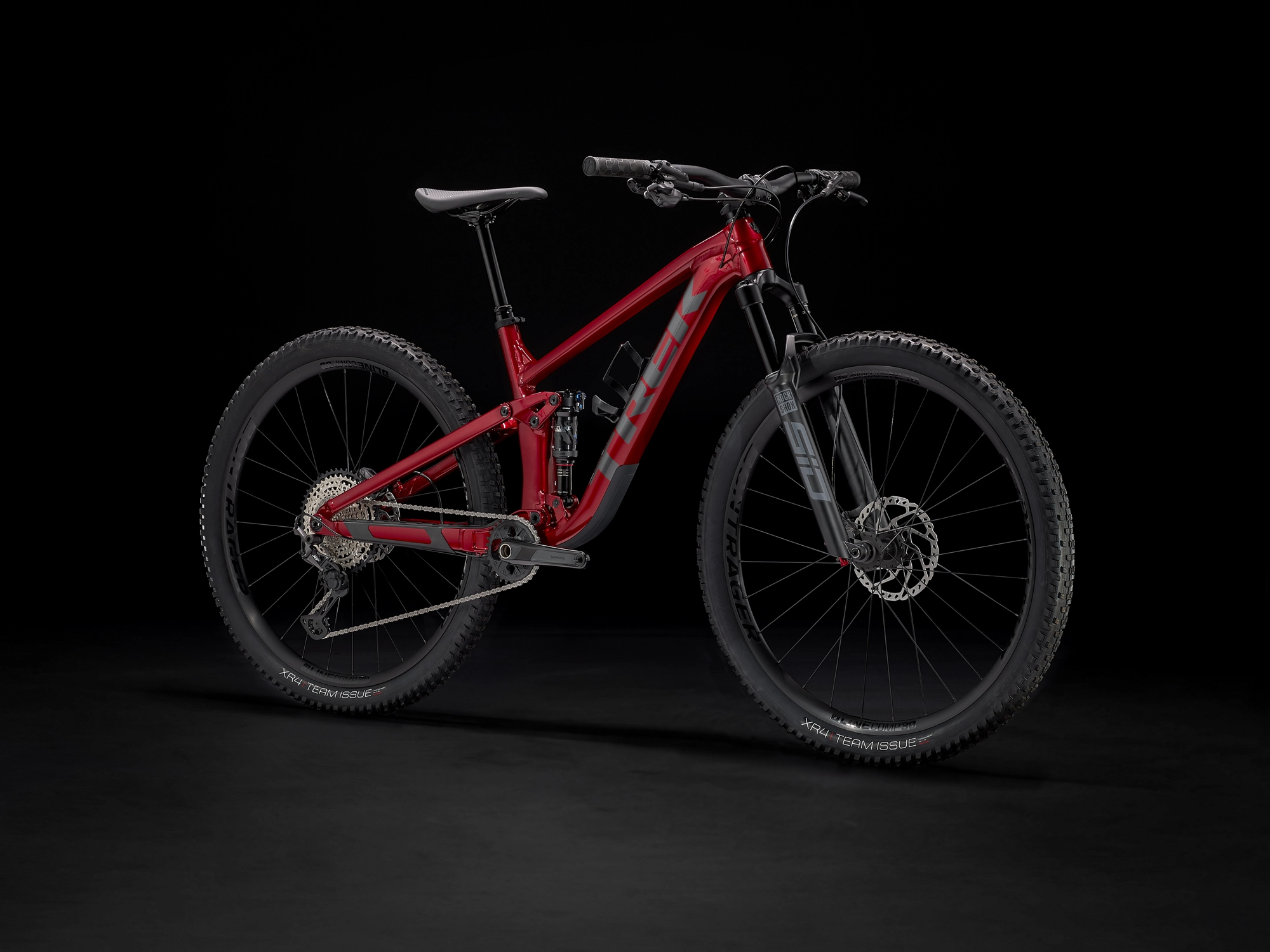 Einen leichten Aluminiumrahmen mit internem Staufach, eine RockShox SID-Gabel mit 120 mm Federweg und geschmeidig ansprechender DebonAir-Feder, einen FOX Performance Float-Dämpfer mit 120 mm Federweg und einen Shimano XT-Antrieb. Dazu gibt es 4-Kolben-Scheibenbremsen für kontrollierte Abfahrten, Bontragers komplett schlauchlose Line Comp 30-Laufräder samt Dichtmittel und Bontragers Line-Variosattelstütze.